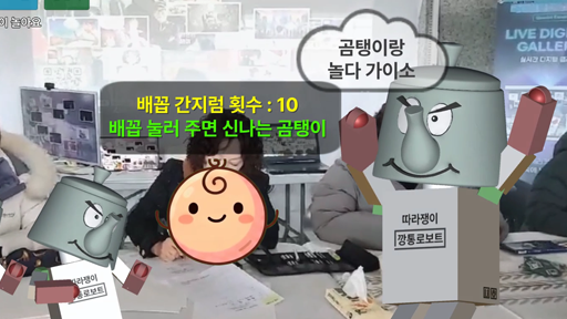 배꼽 스킨십 반응 + 카운트 시스템으로 참여를 중독시킵니다.