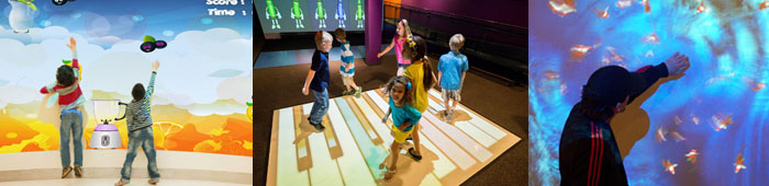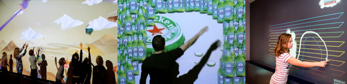 - 오브젝터를 띄운 후 관람객의 손/발 동작에 반응하는 인터렉티브 기능까지 제공
