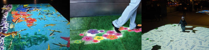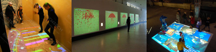 ■ 인터렉티브 프로젝션은 프로젝터를 바닥이나 벽에 조사했을때 영상이 사람의 움직임을 인식해서 물고기가 도망가거나 나뭇잎길이 열리는 등 상호 작용하는 시스템을 의미합니다. ■ 오브젝터의 뎁스를 인식 반응방식이며, 정확한 포인트를 인식하는 터치월과는 다른 기술입니다. |
