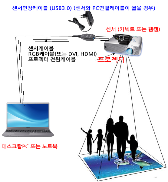 일반적인 프로젝터 설치에 센서만 추가설치 됩니다.![]() |